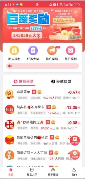 只需注册账号,即可浏览平台上的任务,挑选适合自己的任务完成后即可赚取赏金。
